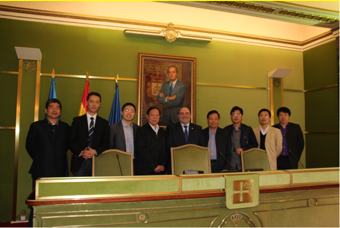 江苏省多多28考察团代表与奥维耶多市市长合影留念