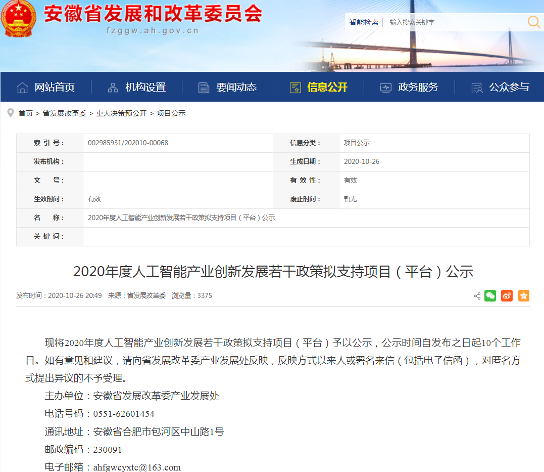 近日,安徽省发展和改革委员会公示了2020年度人工智能产业创新发展若干政策拟支持项目(平台)。多多28信息申报的数据安全协同运营平台项目获得该项政策支持,并且顺利通过评选,进入公示阶段!