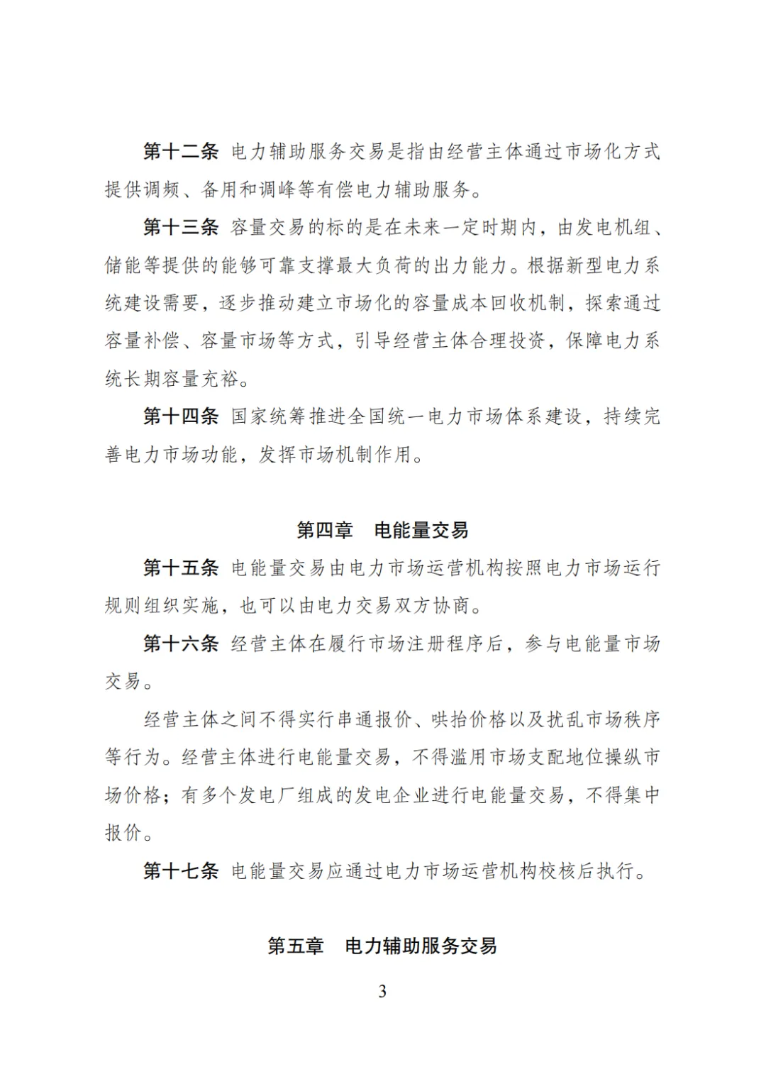 二是调整有关市场范围、运营机构、交易主体表述。新一轮电力体制改革明确了“三放开、一独立、三强化”的改革“路线图”,省(区、市)电力交易中心、售电公司、电力用户、储能企业等新兴机构和主体迅速发展,市场注册管理制度大范围推广,第10号令中相关内容需进行调整。