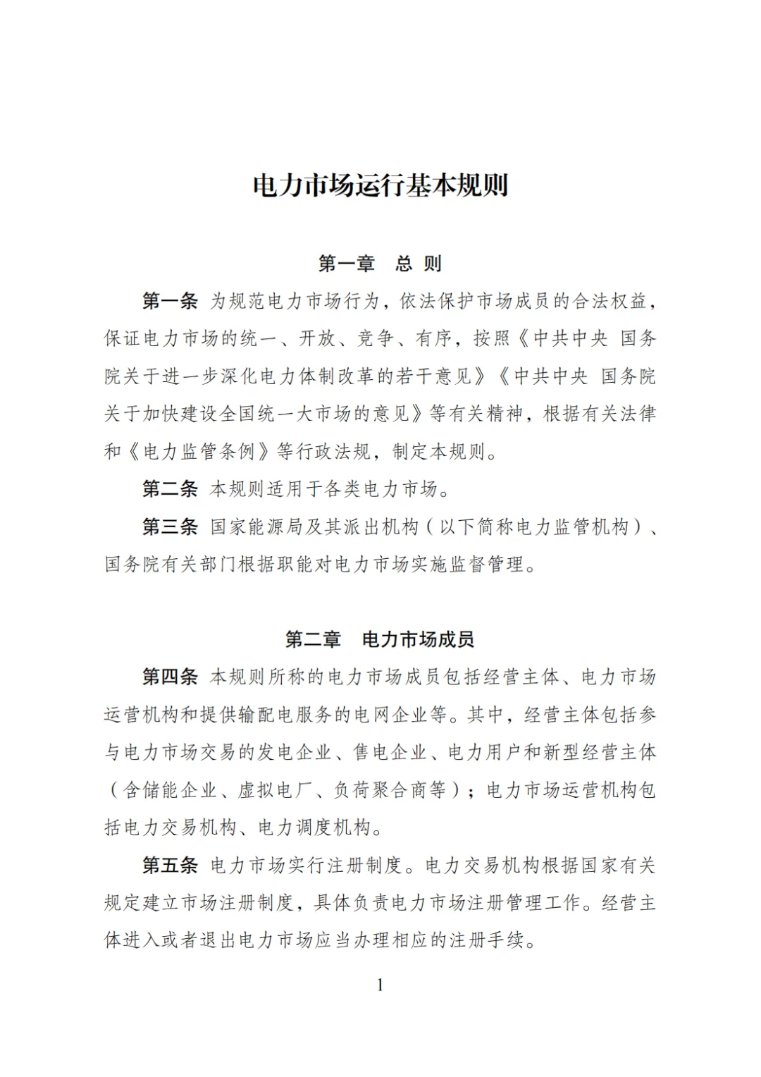 国家发展改革委近期印发了《电力市场运行基本规则》,国家能源局有关负责同志接受采访时指出:《电力市场运行基本规则》作为国家发展改革委的部门规章,是正在组织编制的全国统一电力市场“1+N”基础规则体系中的“1”,将为国家发展改革委、国家能源局制修订的一系列电力市场基本规则等规范性文件提供依据。该规则现予公布,自202471日起施行。