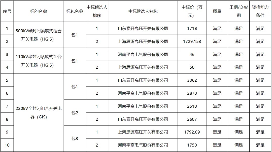 南方电网公司2024年主网一次设备第二批批次招标项目(招标编号:CG2700022001783470),经评标委员会评审,现将中标候选人公示如下: