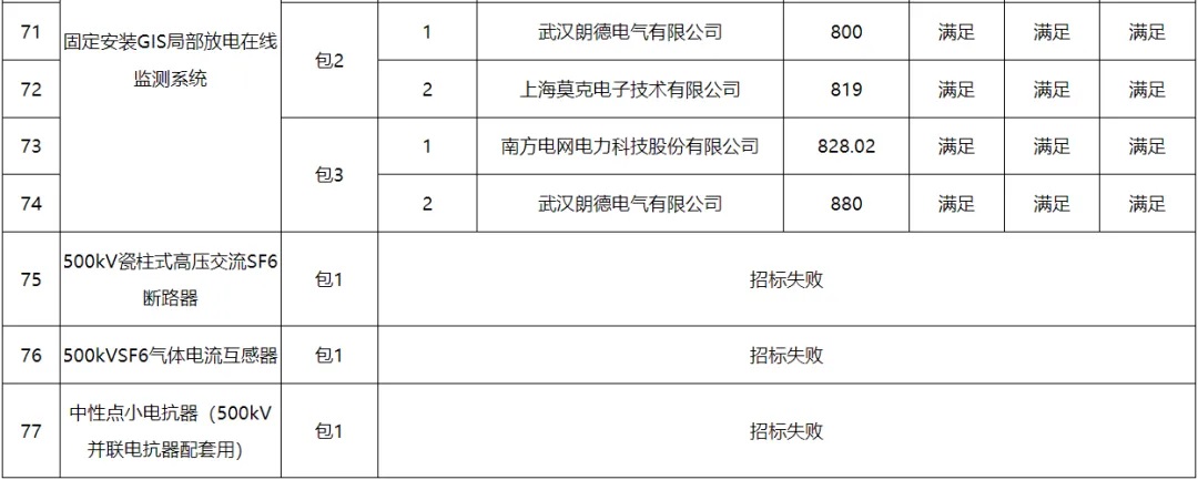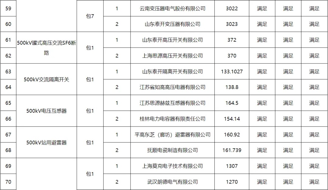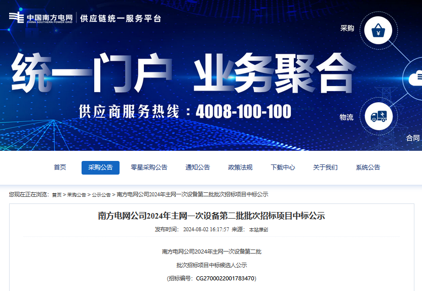 南方电网公司2024年主网一次设备第二批批次招标项目中标候选人公示