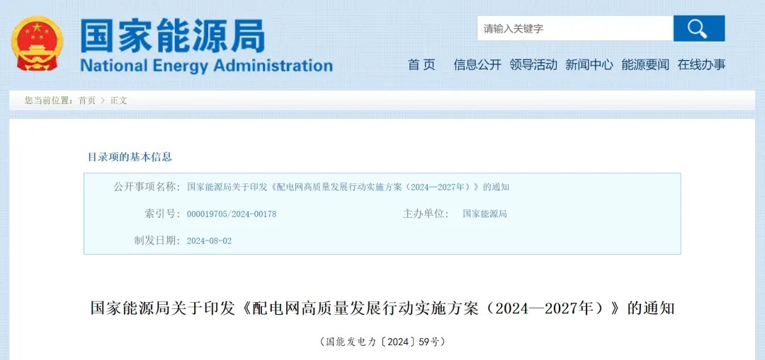为实施上述“四个一批”项目建设,各省要组织编制《配电网发展实施方案》,并于2024年10月底前报送国家能源局,每年年初报送上年度实施进展情况。